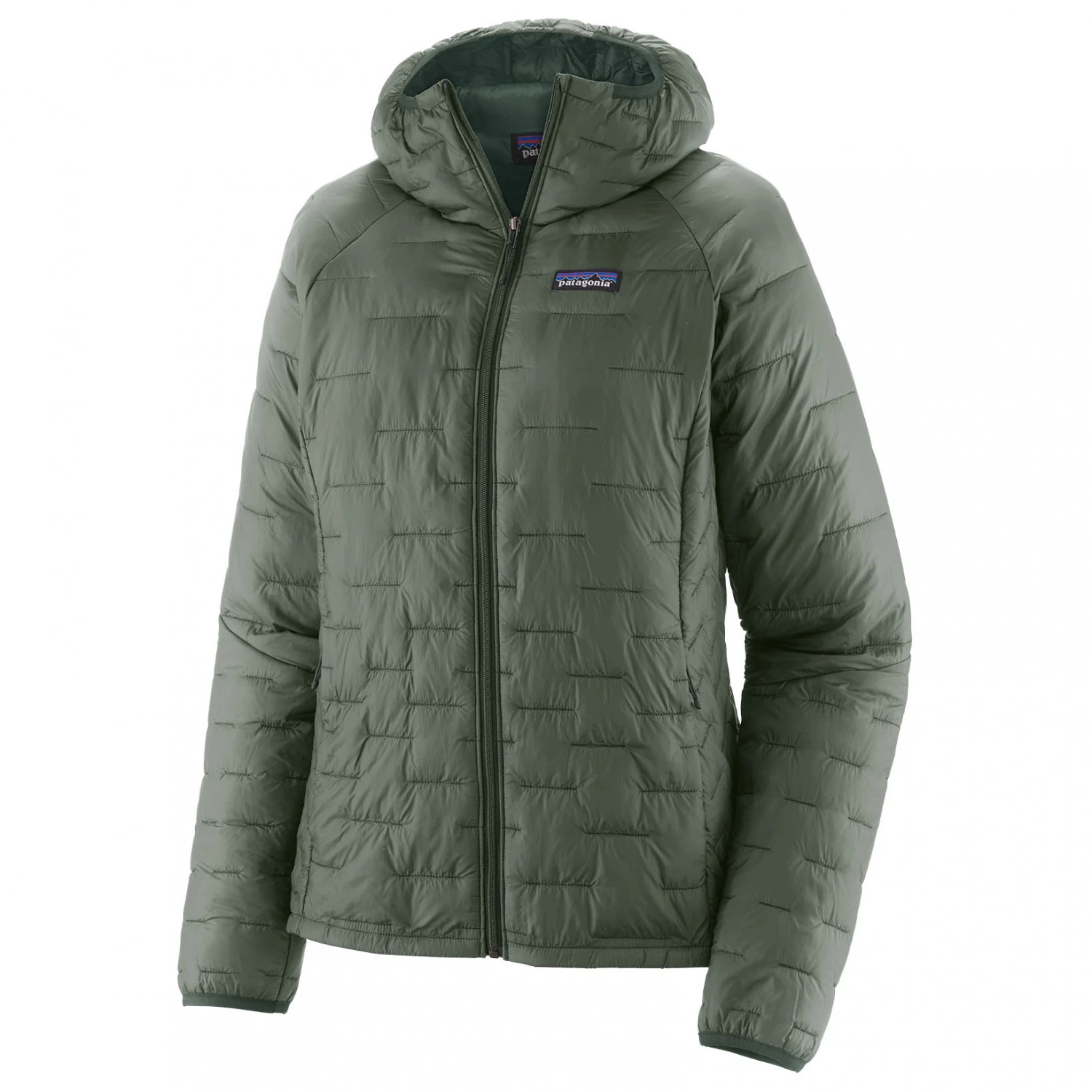 The Women’s Micro Puff Hoody from Patagonia is fantastically well-suited for any time you venture out into the cold, provided it isn’t bucketing down! Although in this regard, the Women’s Micro Puff Hoody scores points with its synthetic PlumaFill insulation made from recycled polyester. This is because the synthetic insulation is impervious to moisture and is also quick-drying, meaning it can comfortably deal with a little precipitation. Because its, first of all, insulated, and secondly windproof, with this jacket you are sure to keep nice and warm, even when the temperatures hit rock bottom and the cold wind is blowing: the PlumaFill synthetic fibres are almost as soft and warm as real down! And to ensure that no cold draughts make it inside, the front zip has a wind strip, and both cuffs and the hem have elastic trims to ensure optimal fit and windproofing. One of the two zipped front pockets is also used as a pack bag for the jacket, which again demonstrates its extremely small packed dimensions. Because it is, on the whole, so light and slim, the hood can also be comfortably worn underneath a climbing helmet for example, to keep your head nice and warm.